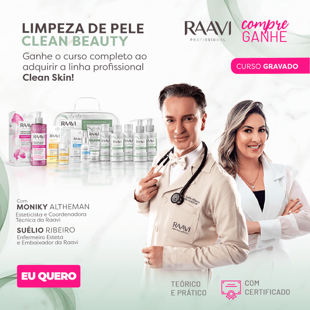 Além disso, ao adquirir o combo curso limpeza de pele clean skin, você terá acesso à nossa linha profissional hipoalergênica e clean beauty. Com os melhores produtos em mãos, você proporcionará uma experiência de limpeza de pele de alta qualidade e segurança.