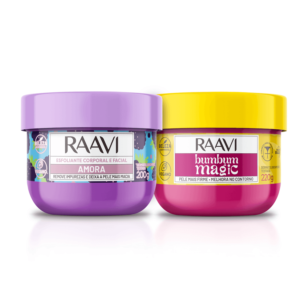 Kit Cuidado Diário Esfoliação e Hidratação Corporal Amora Raavi